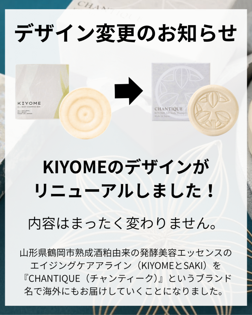 「KIYOME」は、“洗う美容液”として多くの方にご愛用いただいてきた全身シャンプーバーです。